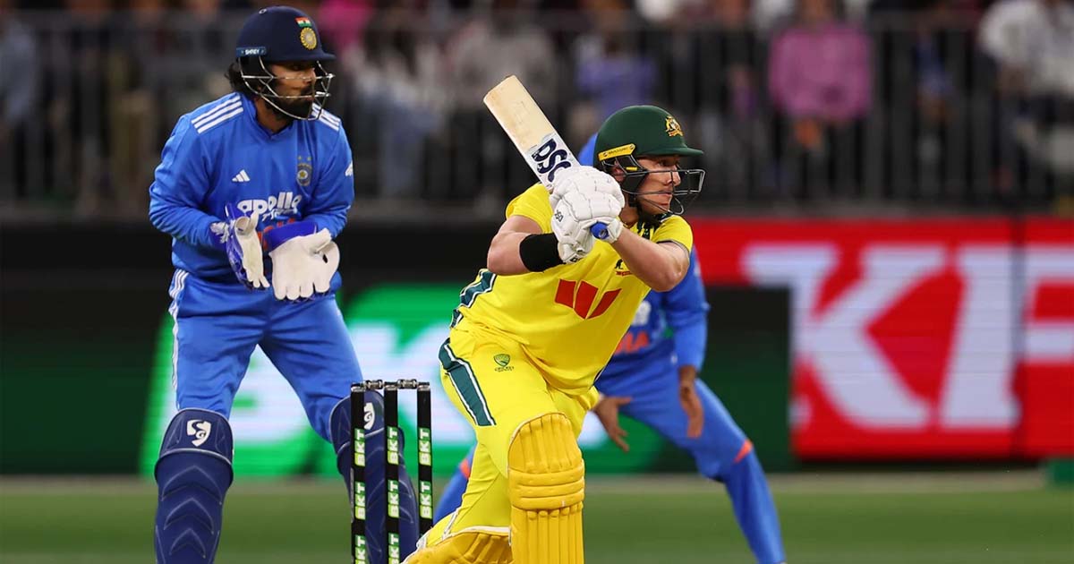 आज सम्पन्न बर्षाले प्रभावित पहिलो खेलमा अस्ट्रेलियाले भारतलाई डकवर्थ–लुइस नियमअनुसार ७ विकेटले पराजित गरेको हो । भारतले २६ ओभरमा ९ विकेट गुमाउँदै १३६ रन बनाएको थियो। जवाफमा अस्ट्रेलियाले २१.१ ओभरमा ३ विकेटको क्षतिमा लक्ष्य पुरा ग¥यो । भारतका पूर्व कप्तानद्वय रोहित शर्मा र विराट कोहलीले खासै प्रदर्शन गर्न सकेनन् ।
