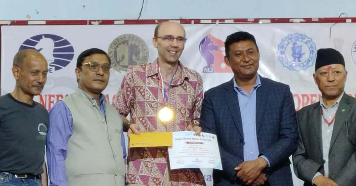 ललितपुर :नेपाल सम्बत् ११४६ को अवसर पारेर न्हूदँ मूल समारोह समितिको आयोजनामा सञ्चालन भएको दुई दिने खुल्ला चेस प्रतियोगिताको बुद्धिचाल उपाधि २५४१ रेटेड ग्रान्डमास्टरले जितेका छन्। अष्ट्रेलियाका जिएम स्मेरडोनले ९ चरणको रापिड प्रतिस्पर्धामा सात जित र दुई खेलमा बराबरी नतिजा निकाल्दै ८ अंक जोडेर प्रथम स्थान हासिल गरेका छन्। विश्व स्तरका खेलाडी स्मेरडोनले चौंथो नेपालभाषा मंकाः खलः फिडे रापिड प्रतियोगिता आफ्नो नाम गर्दै नगद रु। १० हजार, गोल्ड मेडल तथा प्रमाणपत्र प्राप्त गरेका छन्। स्पर्धामा तिन खेलाडीले समान ७ अंक जोडे पनि २१९८ रेटेड क्याण्डिडेट मास्टर पुरुषोत्तम सिलवाल टाइब्रेकको आधारमा द्वितीय स्थान ओगट्न सफल भए। सिएमए पुरुषोत्तमले छ जित, दुई बराबर र एक खेलमा हार आत्मसाथ गर्दै नगद रु ७ हजार शिल्भर मेडल प्राप्त गरे। रसियामा सुपर जिएमलाई पराजित गर्दै ऐतिहासिक उपलब्धि हासिल गरेका सिलवालले यहाँ पनि राम्रो खेल प्रदर्शन गरेका छन्। प्रतियोगितामा जीएमसँग उत्कृष्ट खेल प्रदर्शन गर्दै बराबरी नतिजा निकालेका १९९१ रेटेड निकेन कुसाथाले सात अङ्क जोड्दै नगर रु ५ हजार र ब्रोन्ज मेडल प्राप्त गरेका छन्। ललितपुरका राजु ताम्राकारलाई अन्तिम चरणमा कठिन जित निकाल्दै दोलखाका सुमन मोक्तान चौथो स्थानमा उभिन सफल भएका छन्। १७६६ रेटेड सुमनले प्रतियोगितामा साढे छ अंक प्राप्त गर्दै नगद ४ हजार पुरस्कार जितेका छन्। यसैगरी पाँचौं देखि आठौं स्थानसम्म प्राप्त गर्ने खेलाडीहरूमा २०२८ रेटेड सुरोज महर्जन, १७४५ रेटेड प्रेम खड्का, १८७६ रेटेड पूर्व नेपाल च्याम्पियन नवीन तण्डुकार, १७१८ रेटेड रचित राज लम्साल र १९०४ रेटेड अभिषेक श्रेष्ठले नगद पुरस्कार बाँडेका छन्। यस्तै ६ अंक प्रोग्रेसिभ प्वाइन्टका आधारमा १९०४ रेटेड शुभनदीप थापा उत्कृष्ट दशौं बनेका छन्। महिला प्रतिस्पर्धामा ग्लोसि श्रेष्ठ प्रथम भइ नगद रु ५ हजार प्राप्त गरिन्। यस्तै रिया श्रेष्ठ द्वितीय बन्दै नगद ४ हजार र भारतीय खेलाडी गीताञ्जली कुमारी तृतीय बन्दै नगद पुरस्कार ३ हजार प्राप्त गरेका छन्। ललितपुरका स्थानीय अशोक मोहन श्रेष्ठ प्रथम र राजु ताम्राकार द्वितीय बन्दै नगद पुरस्कार ग्रहण गरेका छन्। नेपालभाषा मंकाः खलः यल र ललितपुर स्पोर्ट्स क्लबको संयोजनमा सम्पन्न समापन तथा पुरस्कार वितरण कार्यक्रममा ललितपुर महानगरपालिका वडा नम्बर ९ का अध्यक्ष राजु महर्जनले विजेता खेलाडीहरूलाई पुरस्कार वितरण गरेका छन्। नेपाल, भारत र अष्ट्रेलियलियाका गरि ७८ जना खेलाडीहरु सहभागि भएको प्रतियोगिताको समापन समारोहमा लुम्बिनी विश्वविद्यालयका डिन माणिक रत्न शाक्यले लुम्बिनीमा बुद्धिचाल प्रतियोगिता आयोजना गर्ने जानकारी ग