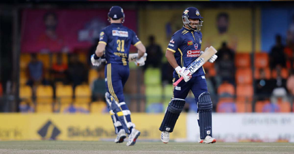 लोकेशले ७२ रन बनाउँदा गप्टिलले ६० रन जोडे । शुभम रञ्जनेले ३८ तथा बसीर अहमदले २३ रन बनाए ।