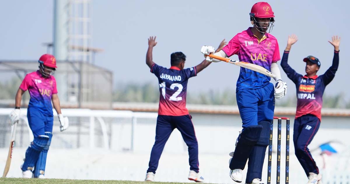 युएईलाई सस्तैमा समेट्ने क्रममा बलिङतर्फ नेपालका दयानन्द मण्डलले सर्वाधिक ६ विकेट लिए । अपराजित पौडेलले २ तथा नितिशकुमार पटेल र कप्तान अशोक धामीले १÷१ विकेट लिए । १४८ रनको लक्ष्य पछ्याएको नेपालले अहिले जवाफी ब्याटिङ गरिरहेको छ ।