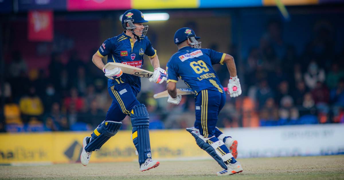 त्रिवि क्रिकेट मैदान, कीर्तिपुरमा टस हारेर सुरुवाती ब्याटिङमा तानिएको विराटनगरले निर्धारित ओभरमा ८ विकेट गुमाएर १४४ रन बनायो । उसकालागि लोकेश बलमे सर्वाधिक ३५ रनको योगदान गरे । बसिर अहमदले २८ साम हिजलेटले २७ तथा फाप डु प्लेसिसले १२ रन बनाए ।मर्चेन्ट डे लेङ्गा १० तथा सन्दीप लामीछाने ६ रनमा अविजित रहे ।