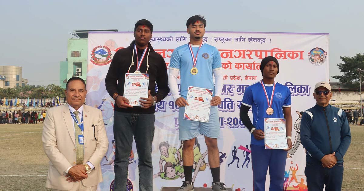 विराटनगर :शहीद रंगशालामा जारी विराटनगर महानगरपालिका स्तरीय १८औँ राष्ट्रपति रनिङ शिल्ड प्रतियोगिता–२०८२ को दोस्रो दिनसम्म आदर्श माध्यमिक विद्यालय ६ स्वर्ण, ६ रजत र २ कास्यसहित पदक तालिकाको शीर्ष स्थानमा पुगेको छ।