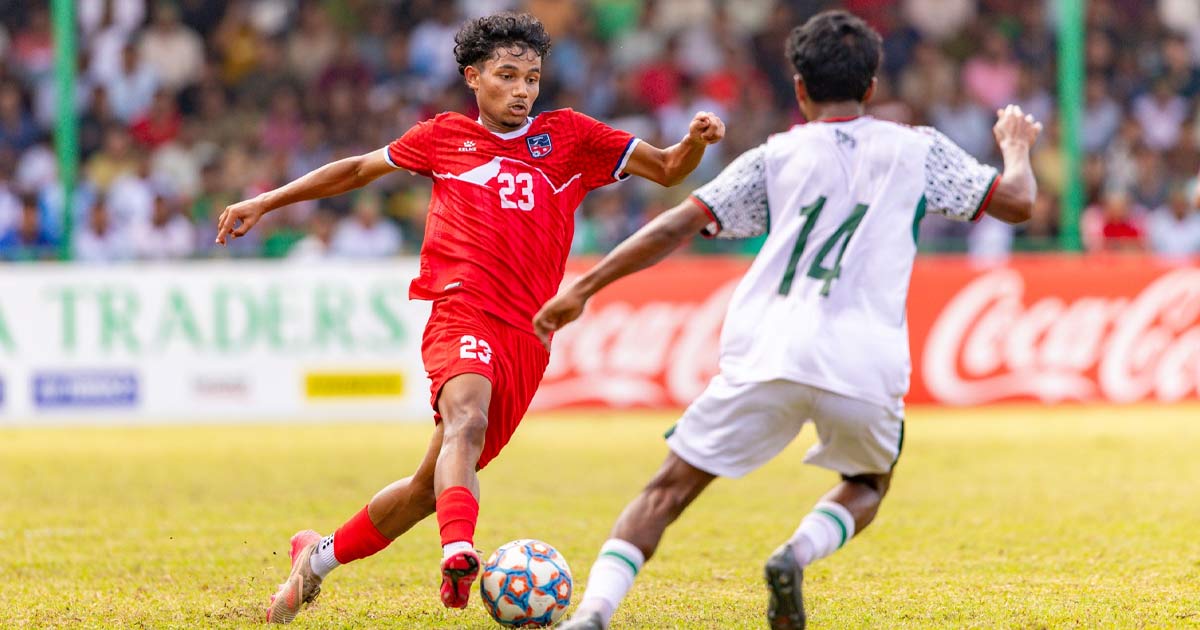 काठमाडौँ । माल्दिभ्सको मालेमा जारी साफ यू-२० च्याम्पियनसिप फुटबलमा नेपालको यात्रा सेमिफाइनलमै सकिएको छ। बुधबार भएको पहिलो सेमिफाइनल खेलमा बंगलादेशसँग १–० गोल अन्तरले पराजित हुँदै नेपाल प्रतियोगिताबाट बाहिरिएको हो।