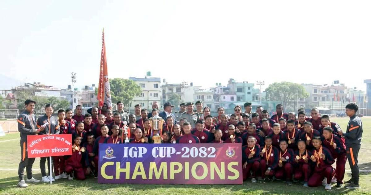 काठमाडौँ:सशस्त्र प्रहरी महानिरीक्षक कप–२०८२ को रनिङ्ग ट्रफी राष्ट्रिय सशस्त्र प्रहरी बल नेपाल प्रशिक्षण प्रतिष्ठान मातातीर्थले जितेको छ। सशस्त्र प्रहरी बल नेपाल प्रधान कार्यालयमा चैत्र ३० गते सम्पन्न प्रतियोगितामा ८ स्वर्ण, ५ रजत र ४ कास्य गरी कुल १७ पदक जितेर मातातीर्थ प्रथम भएको हो।